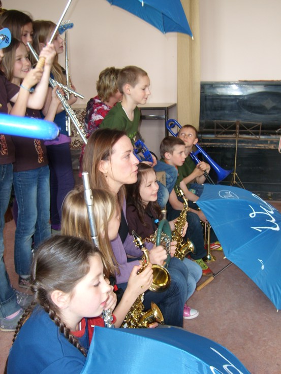 Am 23. Mai 2013 erwarteten wir einen besonderen Gast -Sarah Willis, die Schirmherrin unserer Bläserklasse, der Blue Wuhle Kids Band. Es war eine große Überraschung. Sie stand einfach so in unserer Klasse und sagte: "Hello, Blue Kids, wie geht's euch so?" Wir freuten uns riesig und aßen erst einmal alle einen Pfannkuchen, den sie uns mitgebracht hatte. Jeder bekam von ihr ein T-Shirt von den Philharmonikern. Das fanden wir ganz toll. Wir holten unsere Instrumente und spielten einige Stücke, die wir für das Hoffest geübt haben. Sie hatte diesmal ein Minihorn dabei und spielte mit uns zusammen. Das hat großen Spaß gemacht. Im Herbst möchte sie mit ihren Freunden von der Philharmonie ein kleines Konzert in unserer Aula veranstalten.