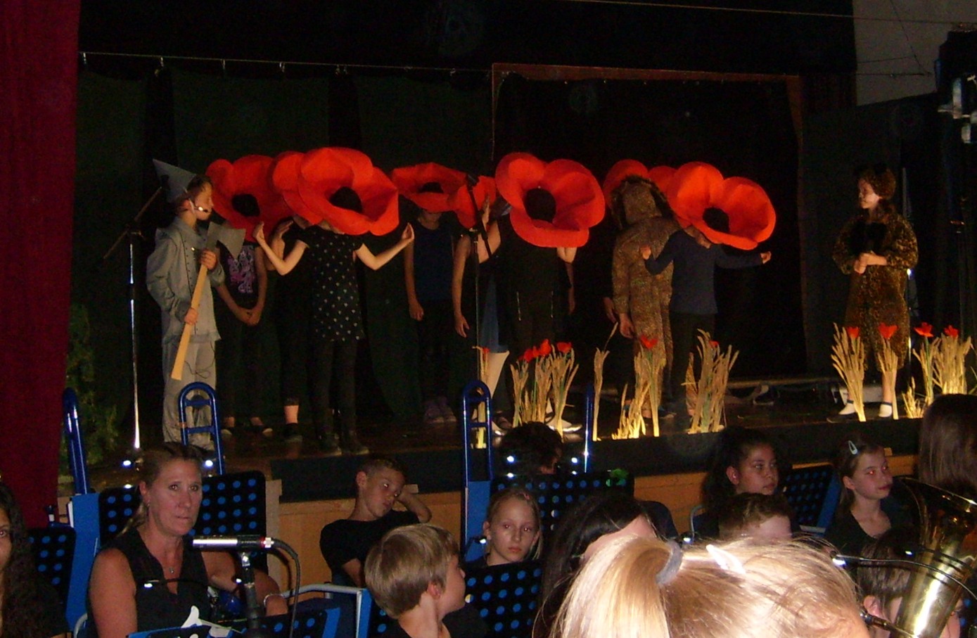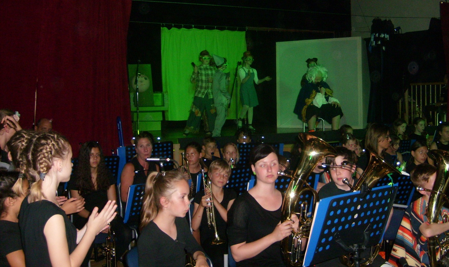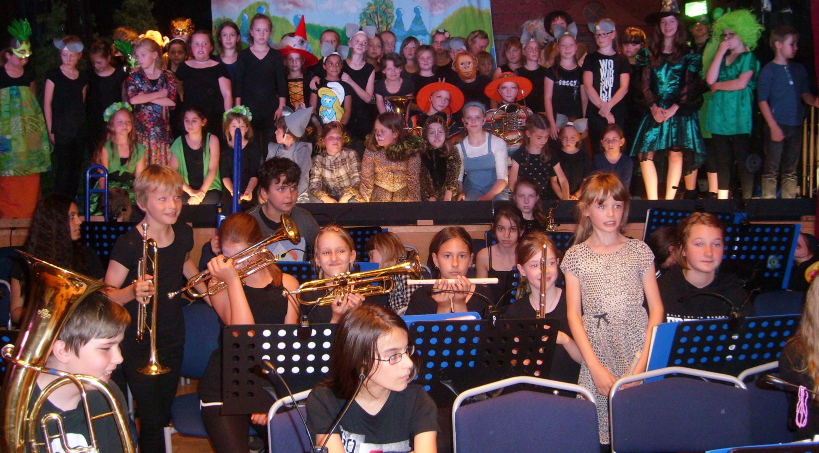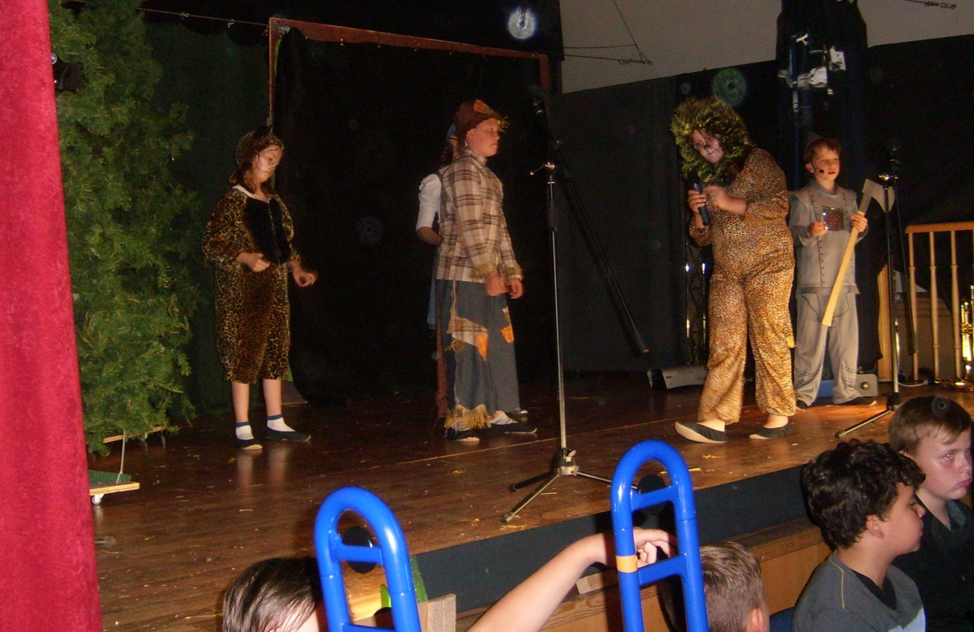 Im Sommer 2017 führten wir mit 100 Kindern das Musiktheaterstück „Der Zauberer der Smaragdenstadt“ auf. Der Text entstand nach dem berühmten Buch von A. Wolkow. Musikalisch gab es wieder einen Mix von bekannten Melodien und eigenen Kompositionen. Zahlreiche helfende Hände haben mitangepackt um das Stück zum Gelingen zu bringen. So entstanden in der Holzwerkstatt die Bühnenaufbauten und bemalte Vorhänge. In der Tanz-AG wurde nicht nur Tanzen geübt, sondern auch tolle Kostüme hergestellt. In der Chor-AG wurde gesungen, aber auch fleißig gebastelt. Es entstanden viele grüne Brillen, Ballons und natürlich die Kostüme unserer Darsteller. Die Bühnentechnik-AG kümmerte sich mit Hochdruck um einen guten Sound und die richtige Beleuchtung.